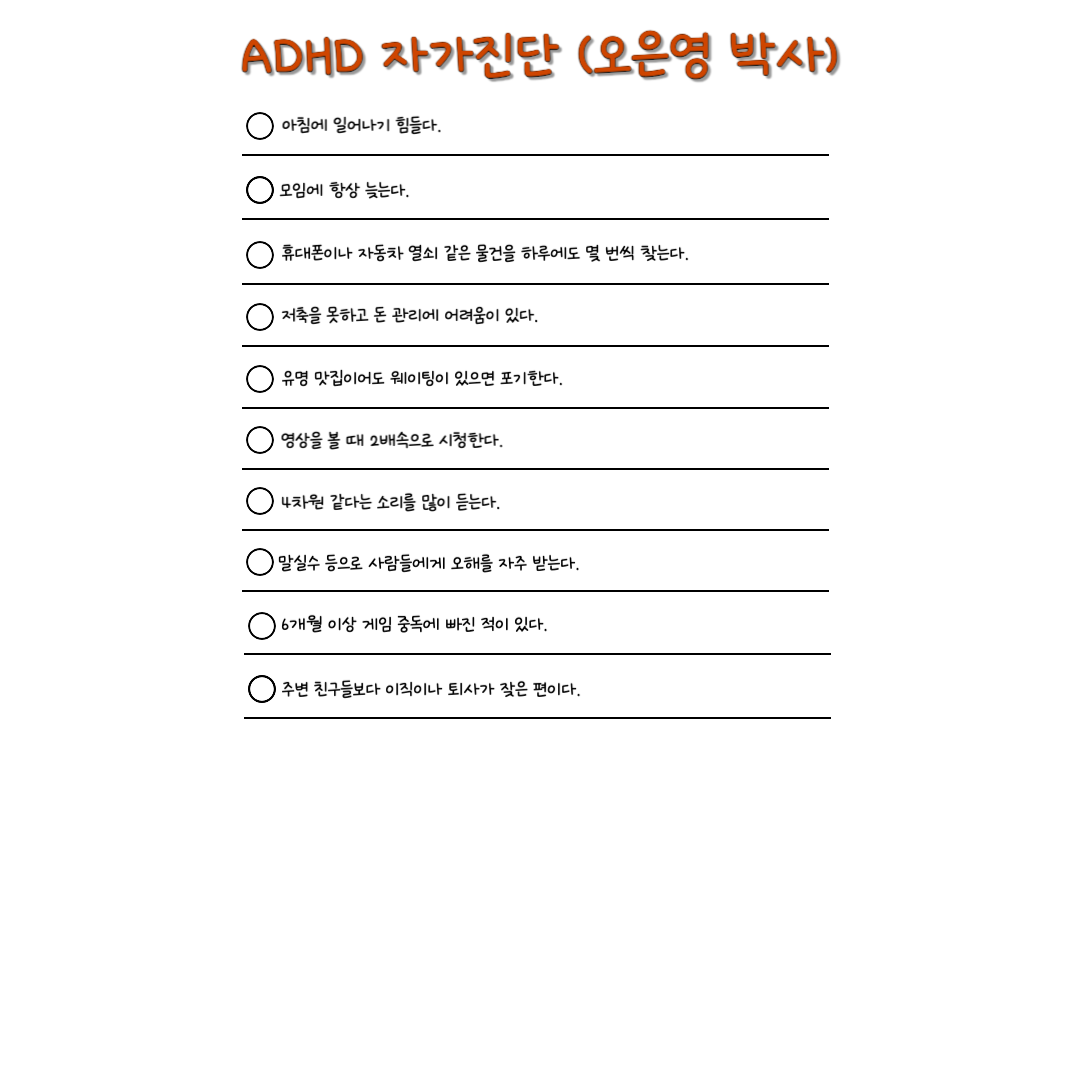 한 번쯤은 내가 ADHD는 아닐까 하고는 의심해 보셨을 거라는 생각이 드네요.